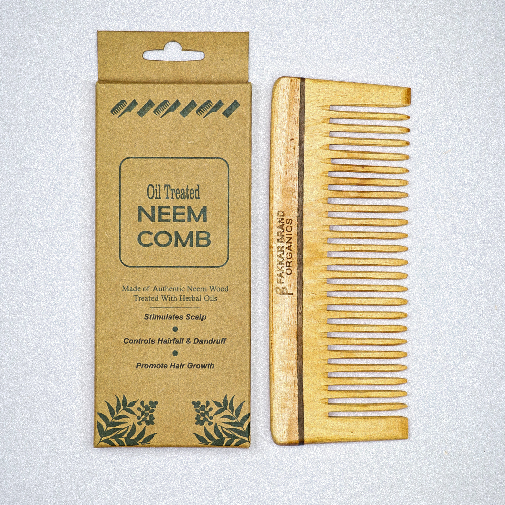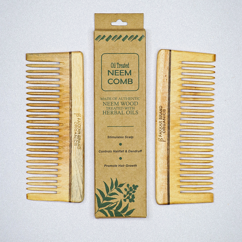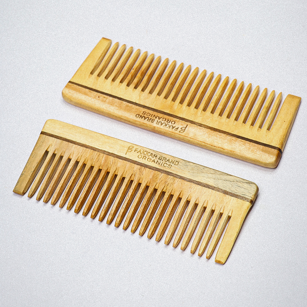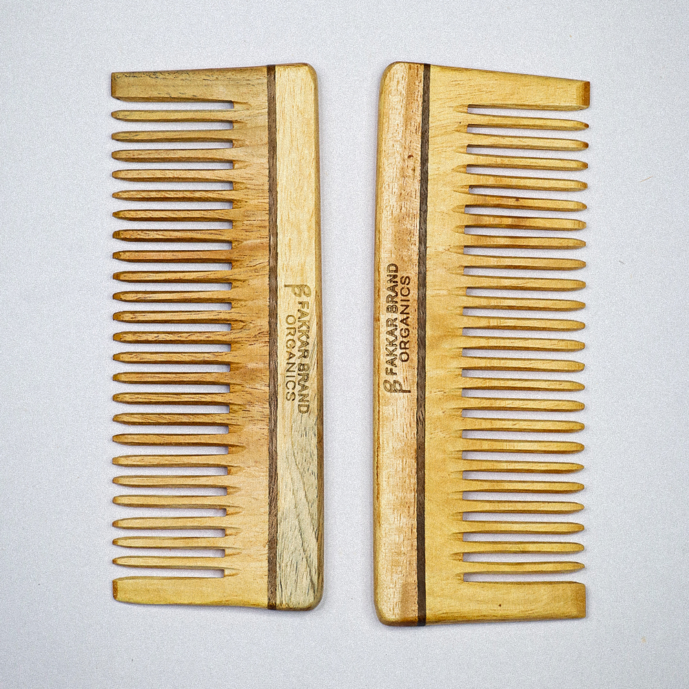 Neem Wood Shampoo Comb – Wide Tooth Detangling Comb | Fakkar Brand Organics