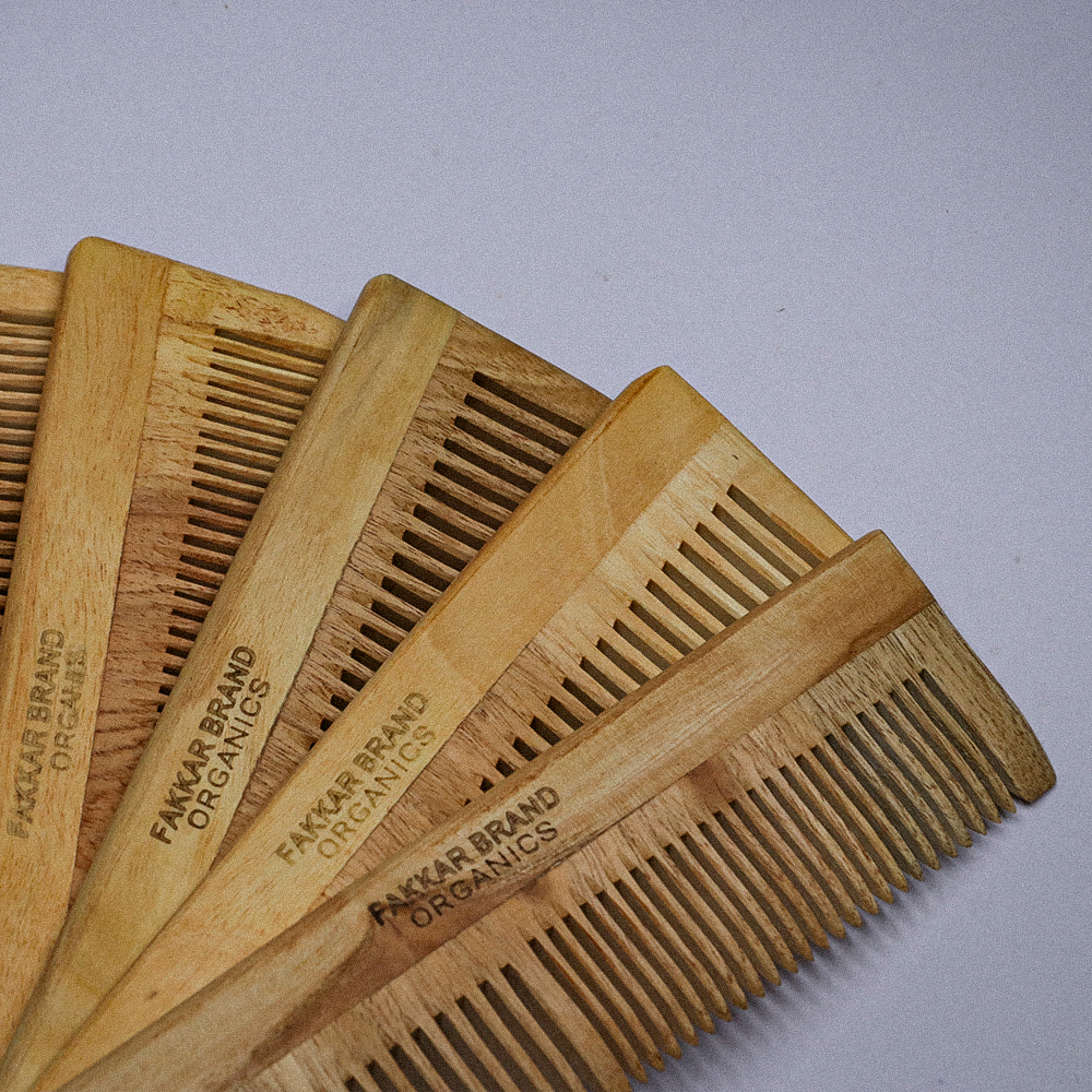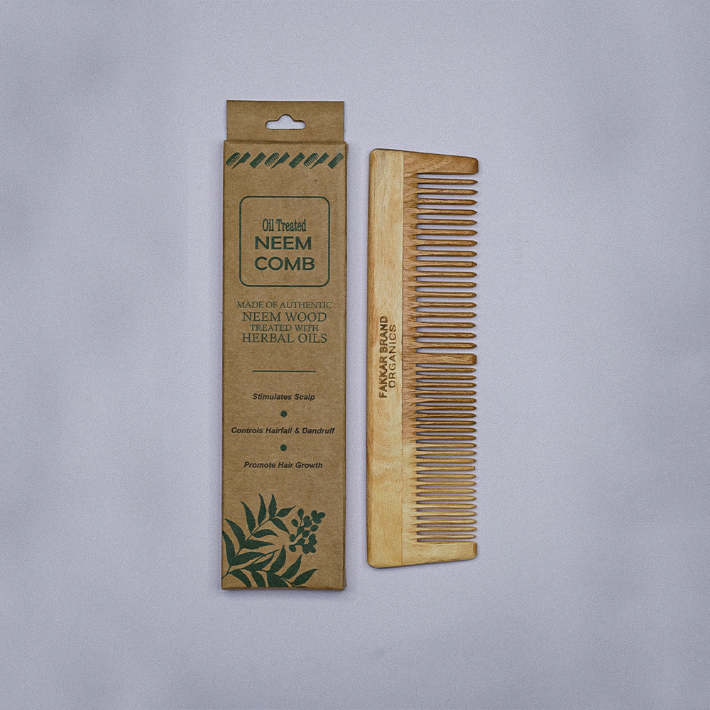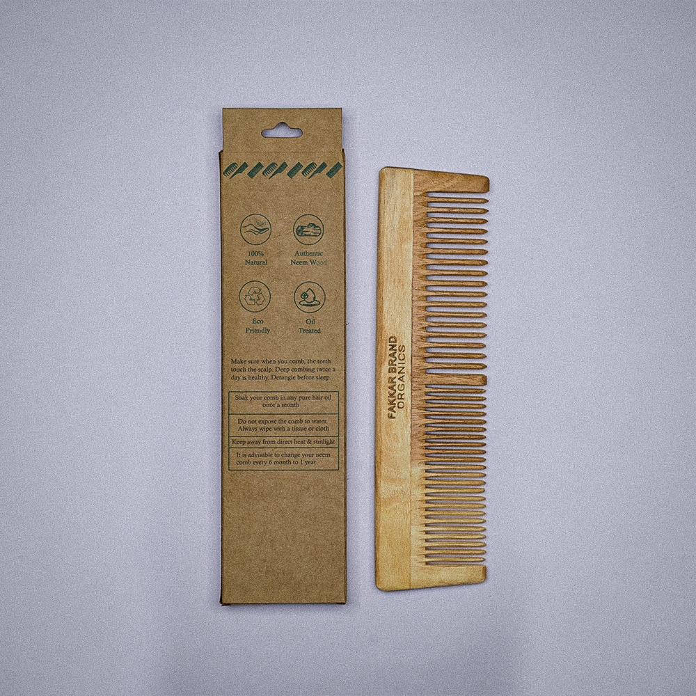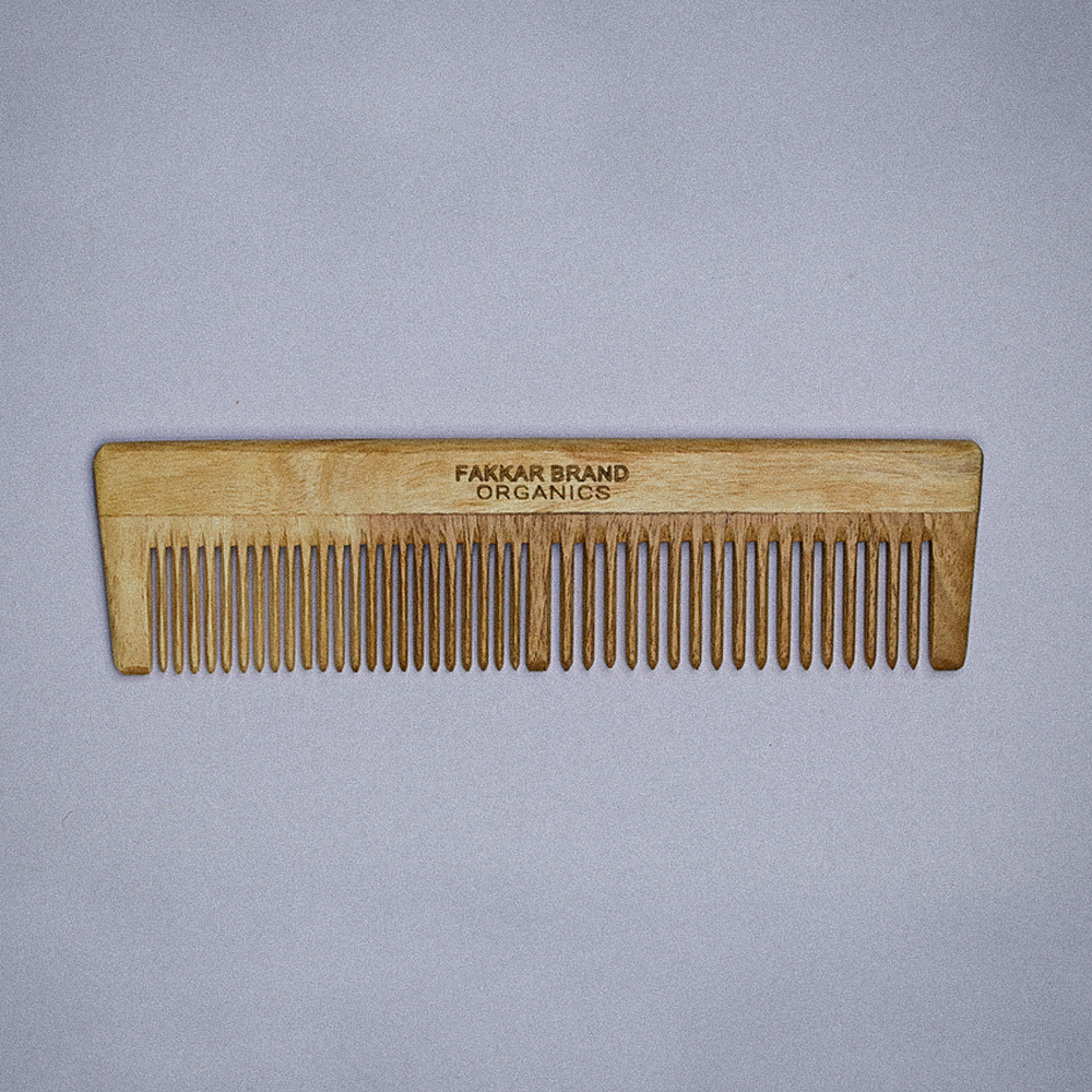 The Dual Lilly Neem Comb by Fakkar Brand Organics is a thoughtfully designed 2-in-1 comb that combines functionality with natural care.