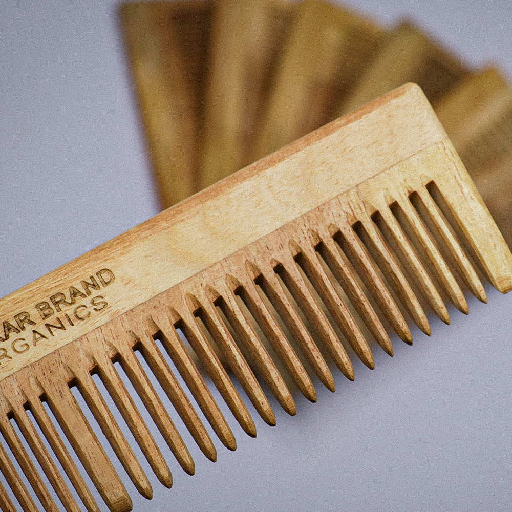 Crafted from 100% pure neem wood and treated with herbal oils, this comb helps maintain scalp health while reducing common hair issues caused by plastic combs.